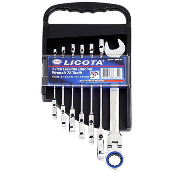 ARW-12MK07 Набор ключей трещоточных с полукарданом 72 зуба, 7 предметов.