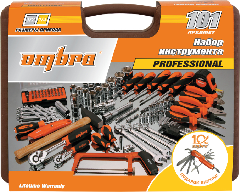 К 10-ти летнему юбилею TM ОМBRA, компания "ПРАЙД" приготовила для своих клиентов замечательный подарок! В комплектацию популярных универсальных наборов добавлен многофункциональный нож с одиннадцатью лезвиями. В акции принимают участие универсальные наборы инструмента с комплектацией 93, 101, 131 и 150 предметов. Информация о подарке размещена на упаковке товара в доступном и привлекающем внимание покупателей виде. ВНИМАНИЕ! Для наборов, участвующих в акции используются специальные артикулы и коды