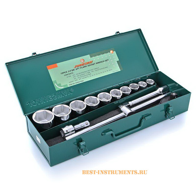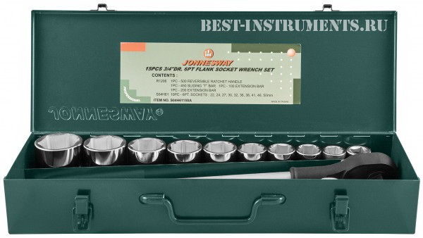 S04H6115SA Набор торцевых головок 3/4"DR 22-50 мм Jonnesway,15 предметов